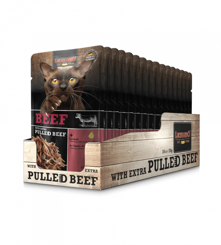 Mit LEONARDO Pulled Beef kommen jetzt auch Katzen in den zünftigen Genuss von "Pulled Meat".