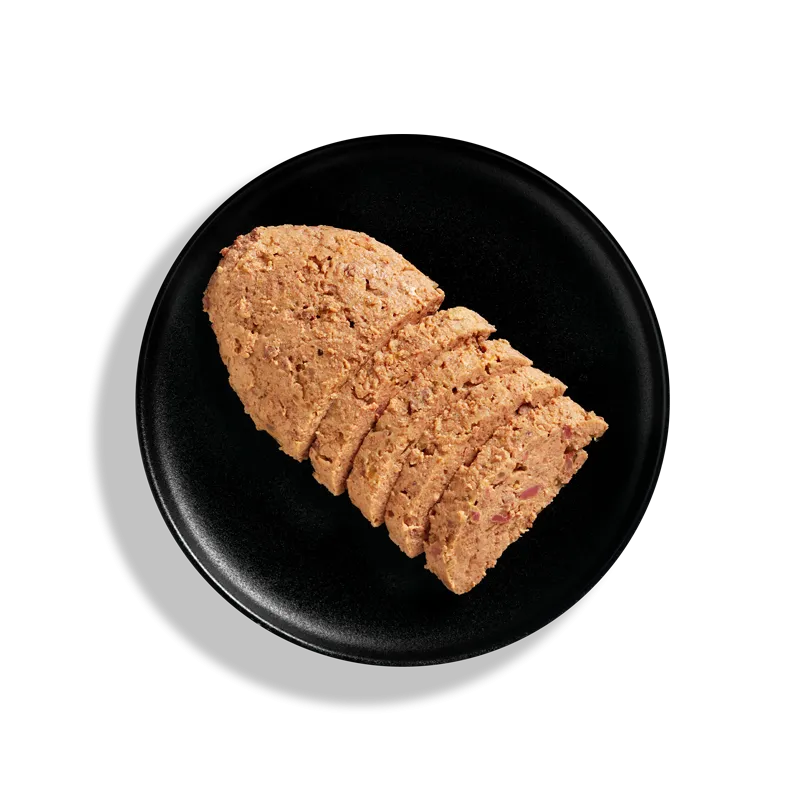 Hühnerfleisch, -leber, -muskelmagen, -herz (60 %); Fleischbrühe vom Huhn (30,8 %); Kürbis (6,5 %); Chicoree Inulin (1 %); Lachsöl (0,5 %); Eierschalen*¹ (0,5 %); Mineralstoffe (0,5 %); Bierhefe, inaktiviert*¹ (0,2 %) *¹getrocknet
